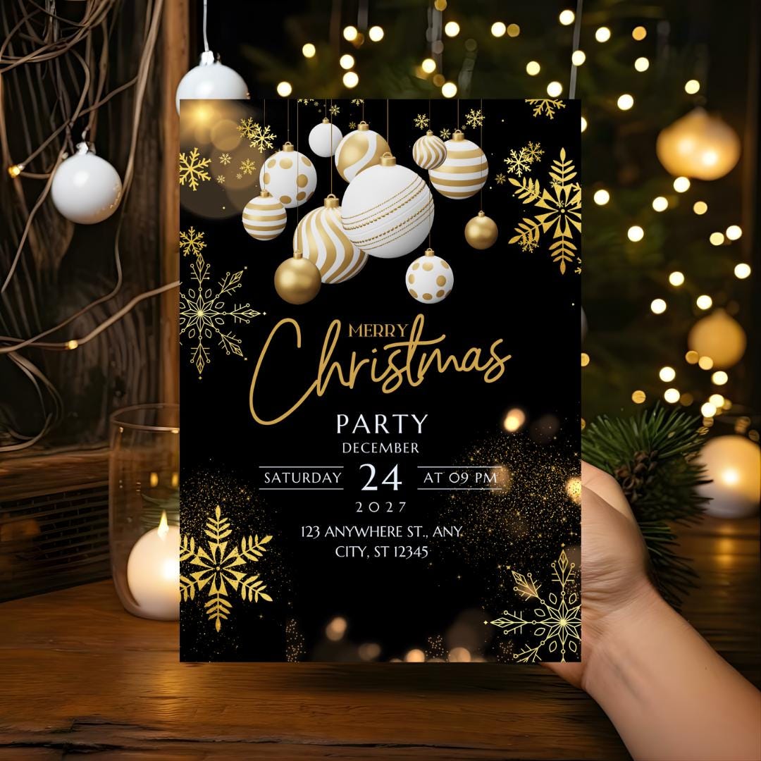 Give your event a memorable, vintage look with this beautifully crafted Christmas party invitation.