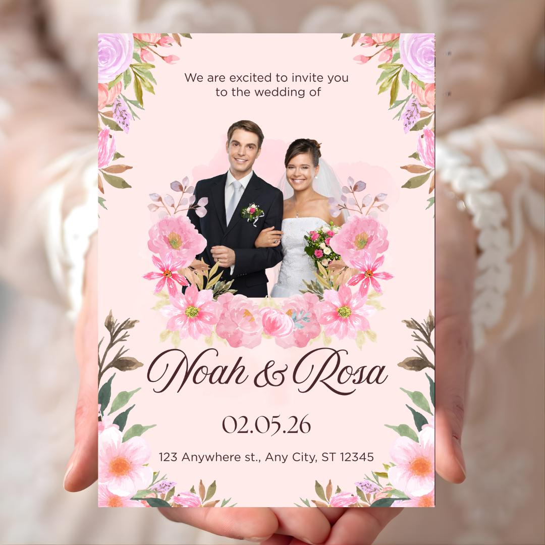 Blush Pink Floral Wedding Invitation Template (Editable)